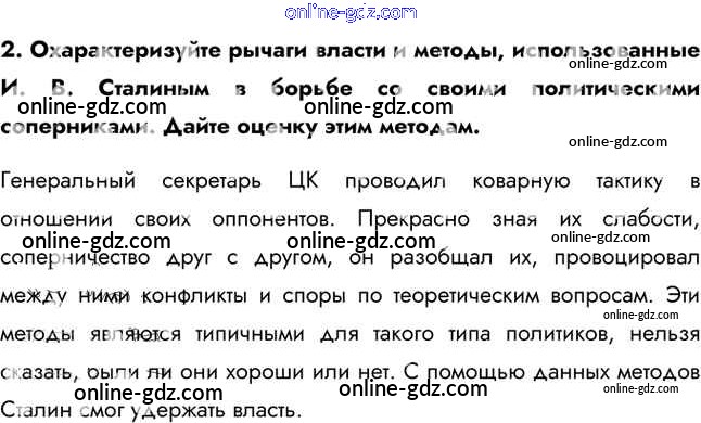 Готовые домашние задания по Истории за 11 класс Учебник Загладин, Петров Инновационная школа Базовый уровень 2014 - Вопросы и задания §18. Культ личности И.В. Сталина, массовые репрессии и политическая система СССР 2