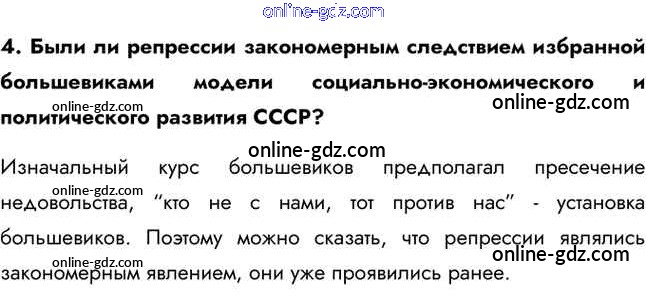 Готовые домашние задания по Истории за 11 класс Учебник Загладин, Петров Инновационная школа Базовый уровень 2014 - Вопросы и задания §18. Культ личности И.В. Сталина, массовые репрессии и политическая система СССР 4