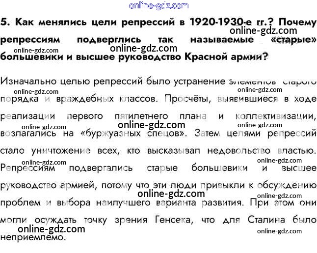 Готовые домашние задания по Истории за 11 класс Учебник Загладин, Петров Инновационная школа Базовый уровень 2014 - Вопросы и задания §18. Культ личности И.В. Сталина, массовые репрессии и политическая система СССР 5