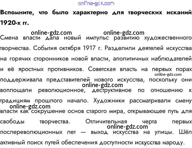 Готовые домашние задания по Истории за 11 класс Учебник Загладин, Петров Инновационная школа Базовый уровень 2014 - Вопросы в начале параграфа §19. Культура и искусство СССР в межвоенные годы 1
