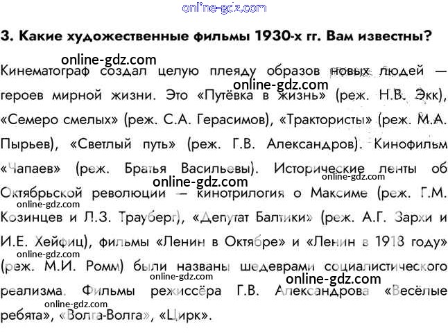 Готовые домашние задания по Истории за 11 класс Учебник Загладин, Петров Инновационная школа Базовый уровень 2014 - Вопросы и задания §19. Культура и искусство СССР в межвоенные годы 3