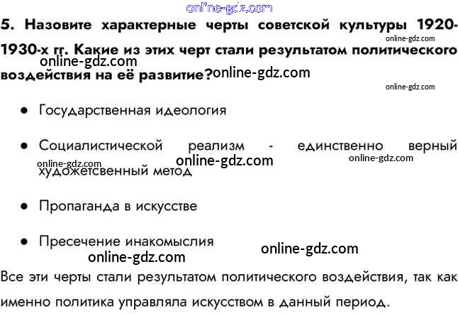 Готовые домашние задания по Истории за 11 класс Учебник Загладин, Петров Инновационная школа Базовый уровень 2014 - Вопросы и задания §19. Культура и искусство СССР в межвоенные годы 5