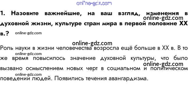 Готовые домашние задания по Истории за 11 класс Учебник Загладин, Петров Инновационная школа Базовый уровень 2014 - Вопросы и задания §23. Духовная жизнь и развитие мировой культуры в первой половине XX в. 1