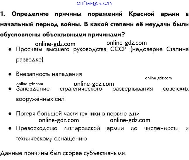 Готовые домашние задания по Истории за 11 класс Учебник Загладин, Петров Инновационная школа Базовый уровень 2014 - Вопросы и задания §25. Начальный период Великой Отечественной войны 1