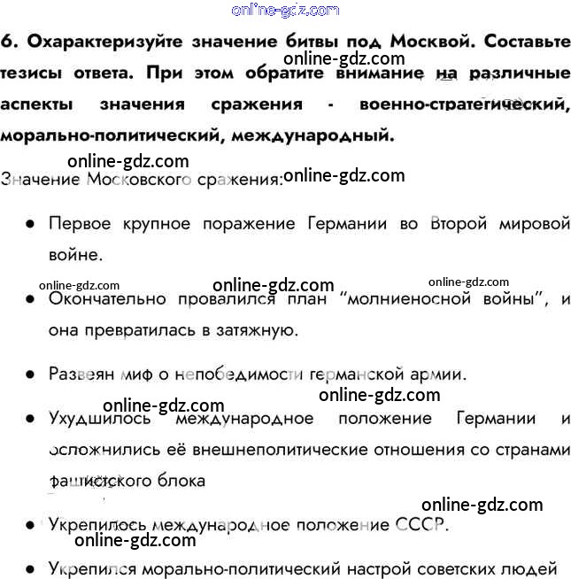 Готовые домашние задания по Истории за 11 класс Учебник Загладин, Петров Инновационная школа Базовый уровень 2014 - Вопросы и задания §25. Начальный период Великой Отечественной войны 6