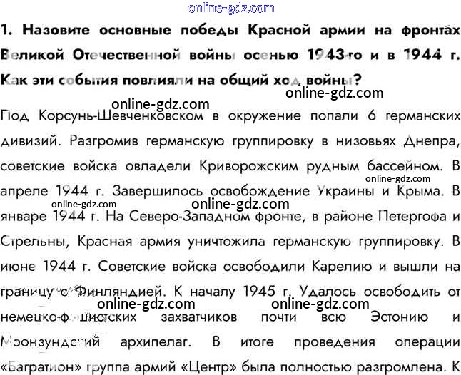 Готовые домашние задания по Истории за 11 класс Учебник Загладин, Петров Инновационная школа Базовый уровень 2014 - Вопросы и задания §28. Наступление Красной армии на заключительном этапе Великой Отечественной войны 1