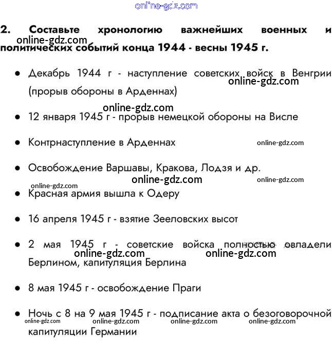 Готовые домашние задания по Истории за 11 класс Учебник Загладин, Петров Инновационная школа Базовый уровень 2014 - Вопросы и задания §28. Наступление Красной армии на заключительном этапе Великой Отечественной войны 2