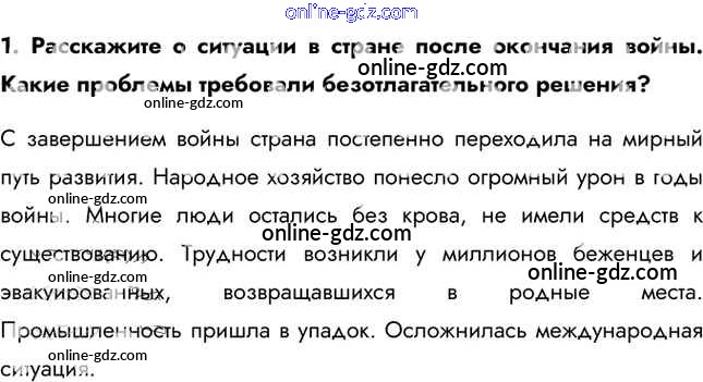 Готовые домашние задания по Истории за 11 класс Учебник Загладин, Петров Инновационная школа Базовый уровень 2014 - Вопросы и задания §30. Советский Союз в последние годы жизни И.В. Сталина 1