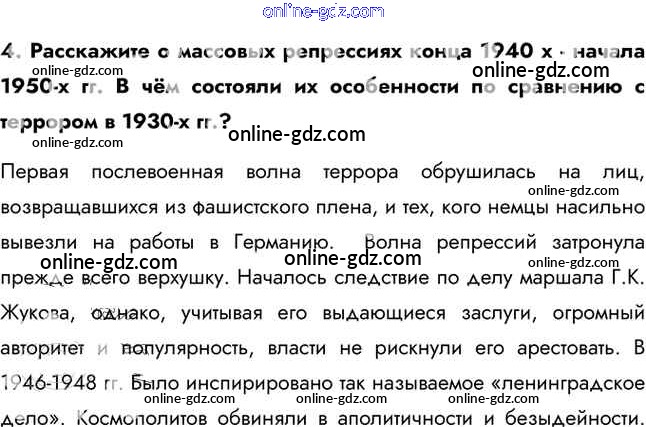 Готовые домашние задания по Истории за 11 класс Учебник Загладин, Петров Инновационная школа Базовый уровень 2014 - Вопросы и задания §30. Советский Союз в последние годы жизни И.В. Сталина 4