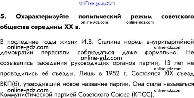 Готовые домашние задания по Истории за 11 класс Учебник Загладин, Петров Инновационная школа Базовый уровень 2014 - Вопросы и задания §30. Советский Союз в последние годы жизни И.В. Сталина 5