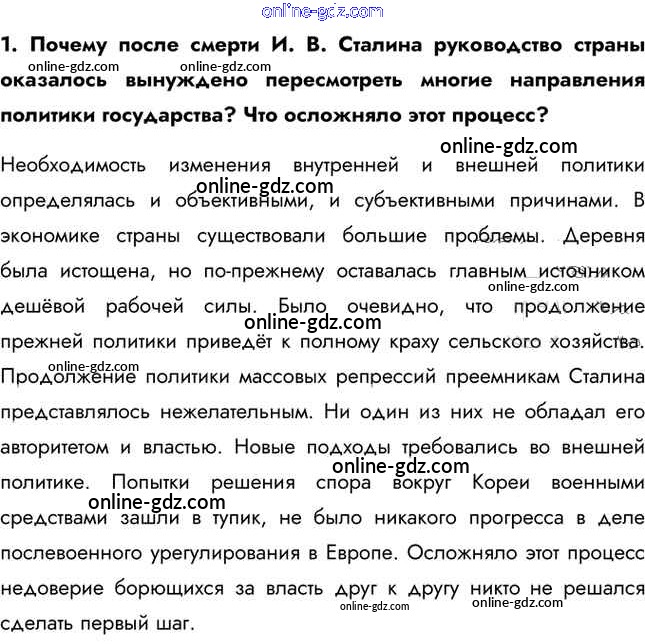 Готовые домашние задания по Истории за 11 класс Учебник Загладин, Петров Инновационная школа Базовый уровень 2014 - Вопросы и задания §31. Первые попытки реформ и XX съезд КПСС 1