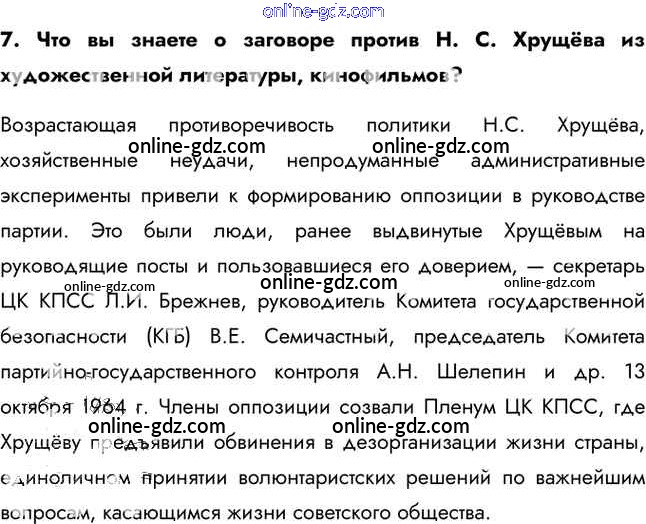 Готовые домашние задания по Истории за 11 класс Учебник Загладин, Петров Инновационная школа Базовый уровень 2014 - Вопросы и задания §32. Советское общество конца 1950-х — начала 1960-х гг. 7
