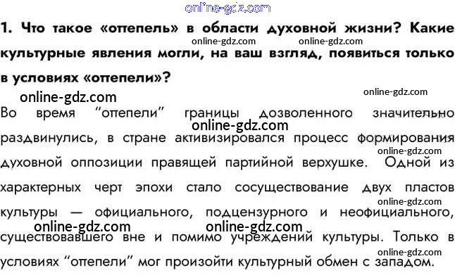 Готовые домашние задания по Истории за 11 класс Учебник Загладин, Петров Инновационная школа Базовый уровень 2014 - Вопросы и задания §33. Духовная жизнь в СССР в 1940-1960-е гг. 1