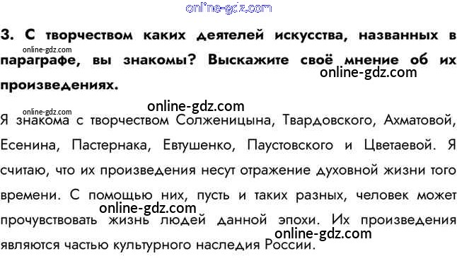 Готовые домашние задания по Истории за 11 класс Учебник Загладин, Петров Инновационная школа Базовый уровень 2014 - Вопросы и задания §33. Духовная жизнь в СССР в 1940-1960-е гг. 3