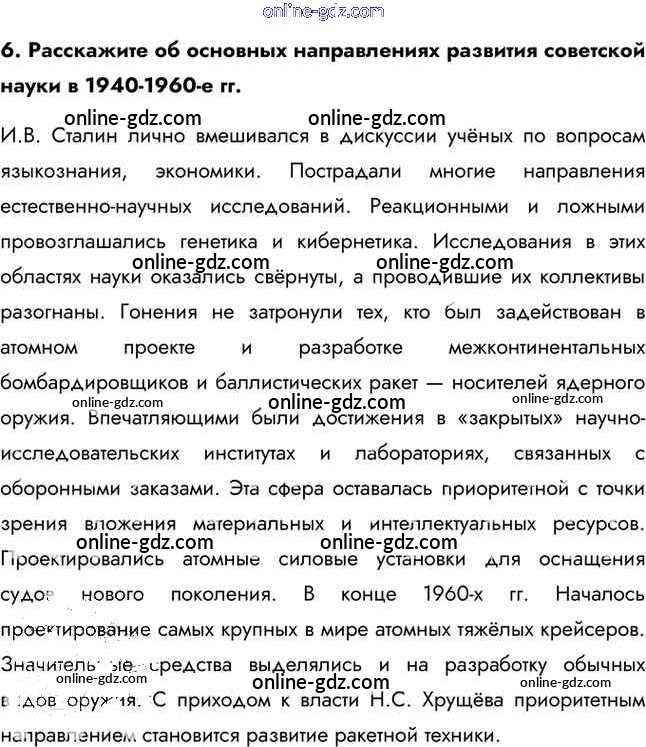 Готовые домашние задания по Истории за 11 класс Учебник Загладин, Петров Инновационная школа Базовый уровень 2014 - Вопросы и задания §33. Духовная жизнь в СССР в 1940-1960-е гг. 6