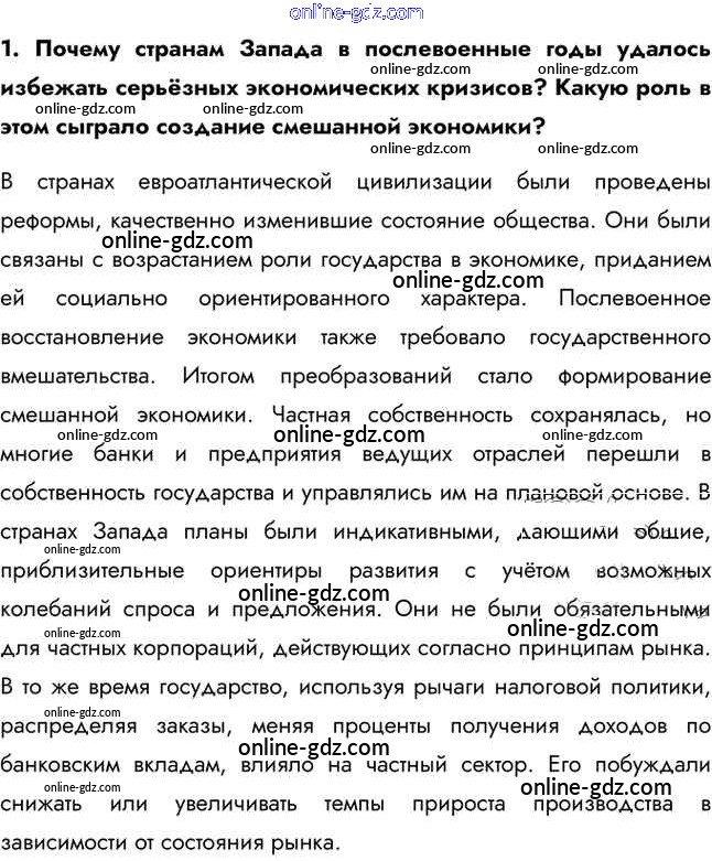 Готовые домашние задания по Истории за 11 класс Учебник Загладин, Петров Инновационная школа Базовый уровень 2014 - Вопросы и задания §34. Страны Западной Европы и США в первые послевоенные десятилетия 1