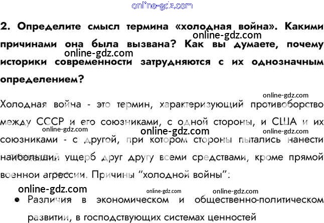 Готовые домашние задания по Истории за 11 класс Учебник Загладин, Петров Инновационная школа Базовый уровень 2014 - Вопросы и задания §36. «Холодная война» и международные конфликты 1940-1970-х гг. 2