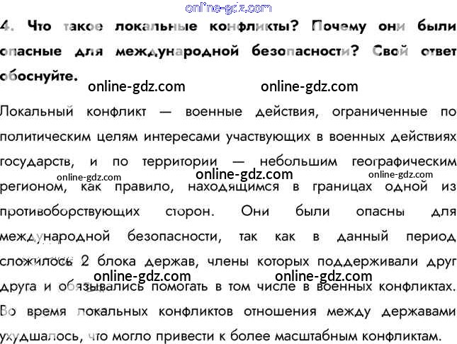Готовые домашние задания по Истории за 11 класс Учебник Загладин, Петров Инновационная школа Базовый уровень 2014 - Вопросы и задания §36. «Холодная война» и международные конфликты 1940-1970-х гг. 4
