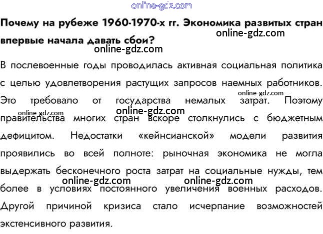 Готовые домашние задания по Истории за 11 класс Учебник Загладин, Петров Инновационная школа Базовый уровень 2014 - Вопросы в начале параграфа §40. Кризис «общества благосостояния» 1
