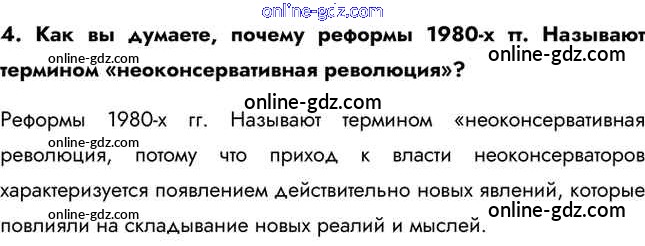 Готовые домашние задания по Истории за 11 класс Учебник Загладин, Петров Инновационная школа Базовый уровень 2014 - Вопросы и задания §41. Неоконсервативная революция 1980-х гг. 4