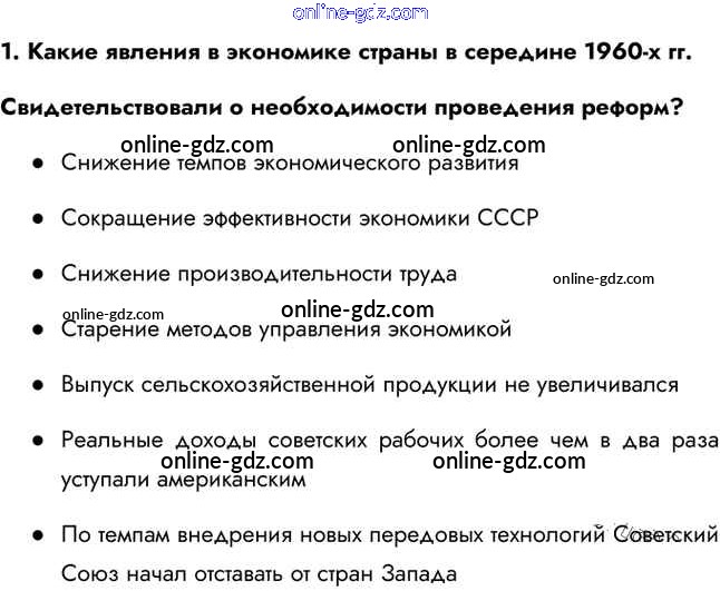 Готовые домашние задания по Истории за 11 класс Учебник Загладин, Петров Инновационная школа Базовый уровень 2014 - Вопросы в начале параграфа §42. СССР: от реформ — к застою 1