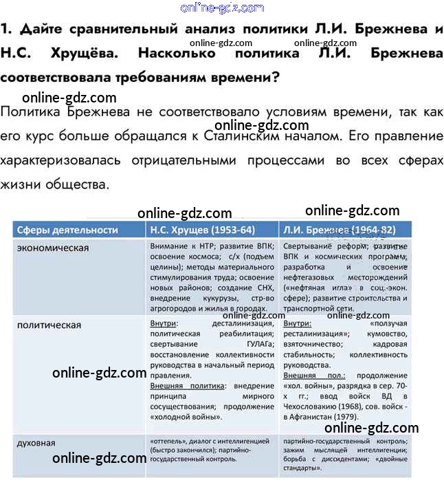 Готовые домашние задания по Истории за 11 класс Учебник Загладин, Петров Инновационная школа Базовый уровень 2014 - Вопросы и задания §42. СССР: от реформ — к застою 1