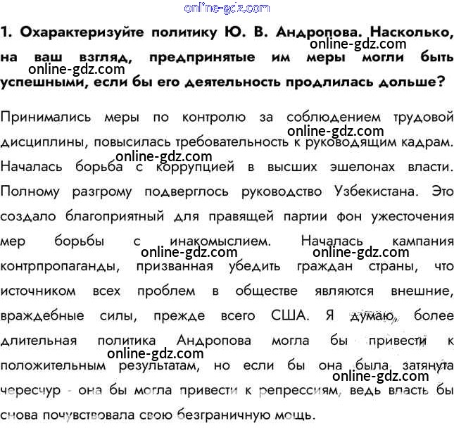 Готовые домашние задания по Истории за 11 класс Учебник Загладин, Петров Инновационная школа Базовый уровень 2014 - Вопросы и задания §43. Углубление кризисных явлений в СССР и начало политики перестройки 1