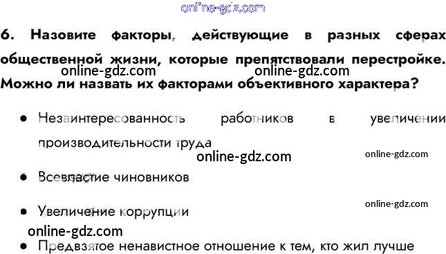 Готовые домашние задания по Истории за 11 класс Учебник Загладин, Петров Инновационная школа Базовый уровень 2014 - Вопросы и задания §43. Углубление кризисных явлений в СССР и начало политики перестройки 6
