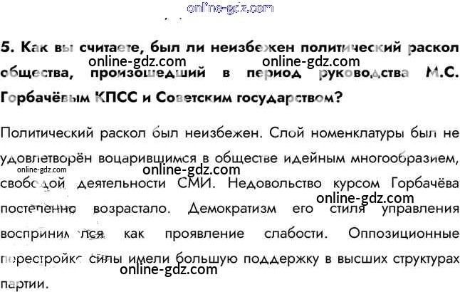 Готовые домашние задания по Истории за 11 класс Учебник Загладин, Петров Инновационная школа Базовый уровень 2014 - Вопросы и задания §44. Развитие гласности и демократии в СССР 5