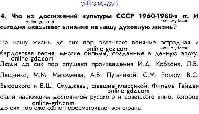 Готовые домашние задания по Истории за 11 класс Учебник Загладин, Петров Инновационная школа Базовый уровень 2014 - Вопросы и задания §46. Наука, литература и искусство. Спорт. 1960-1980-е гг. 4