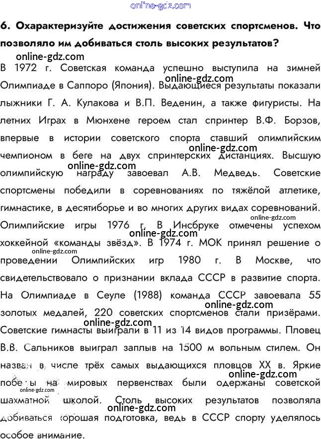 Готовые домашние задания по Истории за 11 класс Учебник Загладин, Петров Инновационная школа Базовый уровень 2014 - Вопросы и задания §46. Наука, литература и искусство. Спорт. 1960-1980-е гг. 6