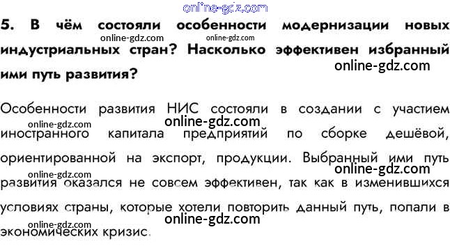 Готовые домашние задания по Истории за 11 класс Учебник Загладин, Петров Инновационная школа Базовый уровень 2014 - Вопросы и задания §47. Япония, новые индустриальные страны и Китай: новый этап развития 5