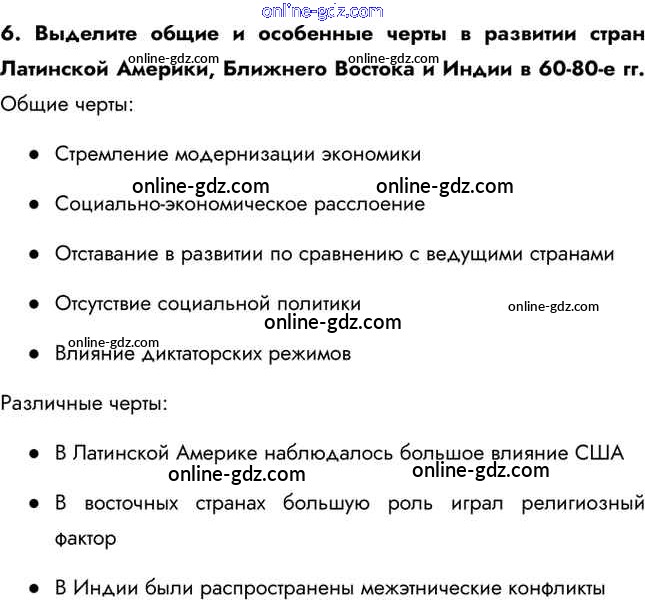 Готовые домашние задания по Истории за 11 класс Учебник Загладин, Петров Инновационная школа Базовый уровень 2014 - Вопросы и задания §48. Социально-экономическое развитие Индии, исламского мира и Латинской Америки 6