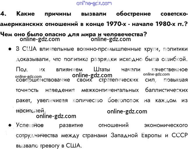 Готовые домашние задания по Истории за 11 класс Учебник Загладин, Петров Инновационная школа Базовый уровень 2014 - Вопросы и задания §49. Международные отношения: от разрядки к завершению «холодной войны» 4