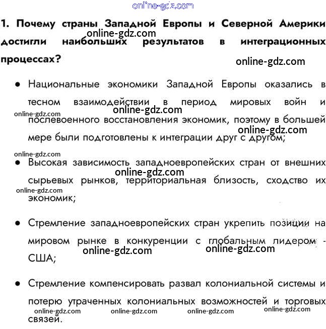 Готовые домашние задания по Истории за 11 класс Учебник Загладин, Петров Инновационная школа Базовый уровень 2014 - Вопросы и задания §51. Интеграция развитых стран и её итоги 1