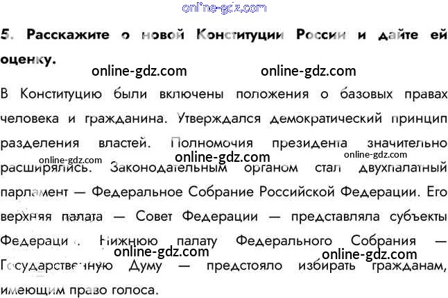 Готовые домашние задания по Истории за 11 класс Учебник Загладин, Петров Инновационная школа Базовый уровень 2014 - Вопросы и задания §52. Россия: курс реформ и политический кризис 1993 г. 5