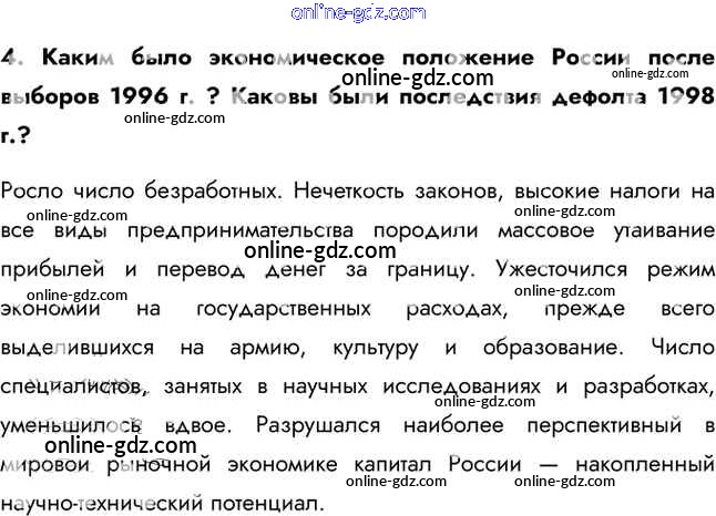Готовые домашние задания по Истории за 11 класс Учебник Загладин, Петров Инновационная школа Базовый уровень 2014 - Вопросы и задания §53. Общественно-политические проблемы России во второй половине 1990-х гг. 4