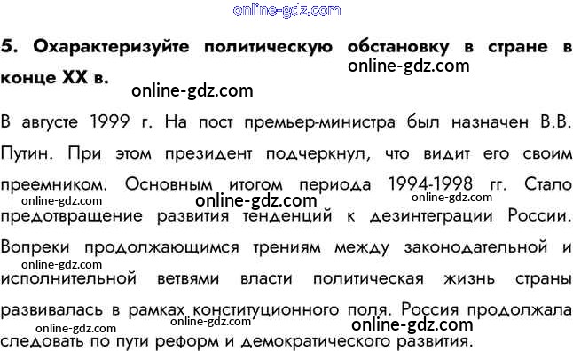 Готовые домашние задания по Истории за 11 класс Учебник Загладин, Петров Инновационная школа Базовый уровень 2014 - Вопросы и задания §53. Общественно-политические проблемы России во второй половине 1990-х гг. 5