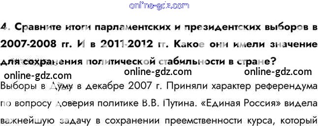 Готовые домашние задания по Истории за 11 класс Учебник Загладин, Петров Инновационная школа Базовый уровень 2014 - Вопросы и задания §55. Российская Федерация в начале XXI в. 4