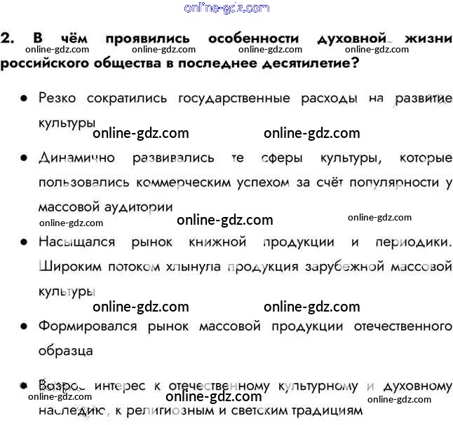 Готовые домашние задания по Истории за 11 класс Учебник Загладин, Петров Инновационная школа Базовый уровень 2014 - Вопросы и задания §56. Духовная жизнь России в современную эпоху 2