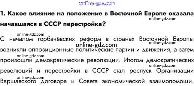 Готовые домашние задания по Истории за 11 класс Учебник Загладин, Петров Инновационная школа Базовый уровень 2014 - Вопросы и задания §57. Страны Восточной и Юго-Восточной Европы и государства СНГ в мировом сообществе 1