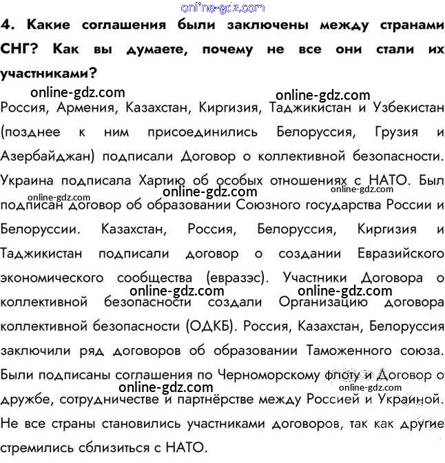 Готовые домашние задания по Истории за 11 класс Учебник Загладин, Петров Инновационная школа Базовый уровень 2014 - Вопросы и задания §57. Страны Восточной и Юго-Восточной Европы и государства СНГ в мировом сообществе 4