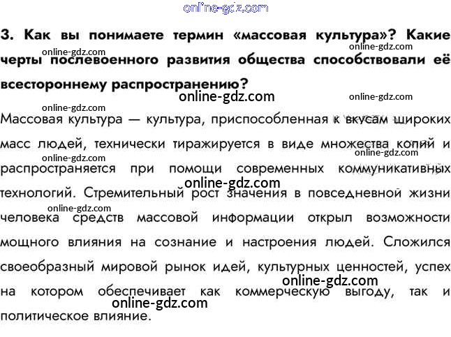 Готовые домашние задания по Истории за 11 класс Учебник Загладин, Петров Инновационная школа Базовый уровень 2014 - Вопросы и задания §60. Основные тенденции развития мировой культуры во второй половине XX в. 3