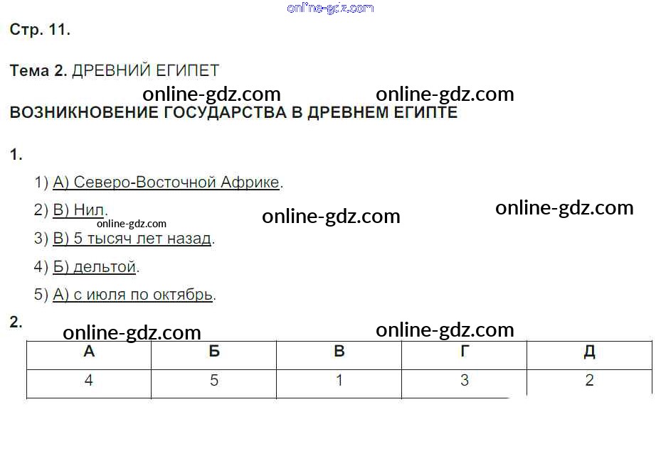 Готовые домашние задания по Истории за 5 класс Рабочая тетрадь Абрамов, Абрамова Вертикаль 2019 - Тема 2. Древний Египет стр. 11