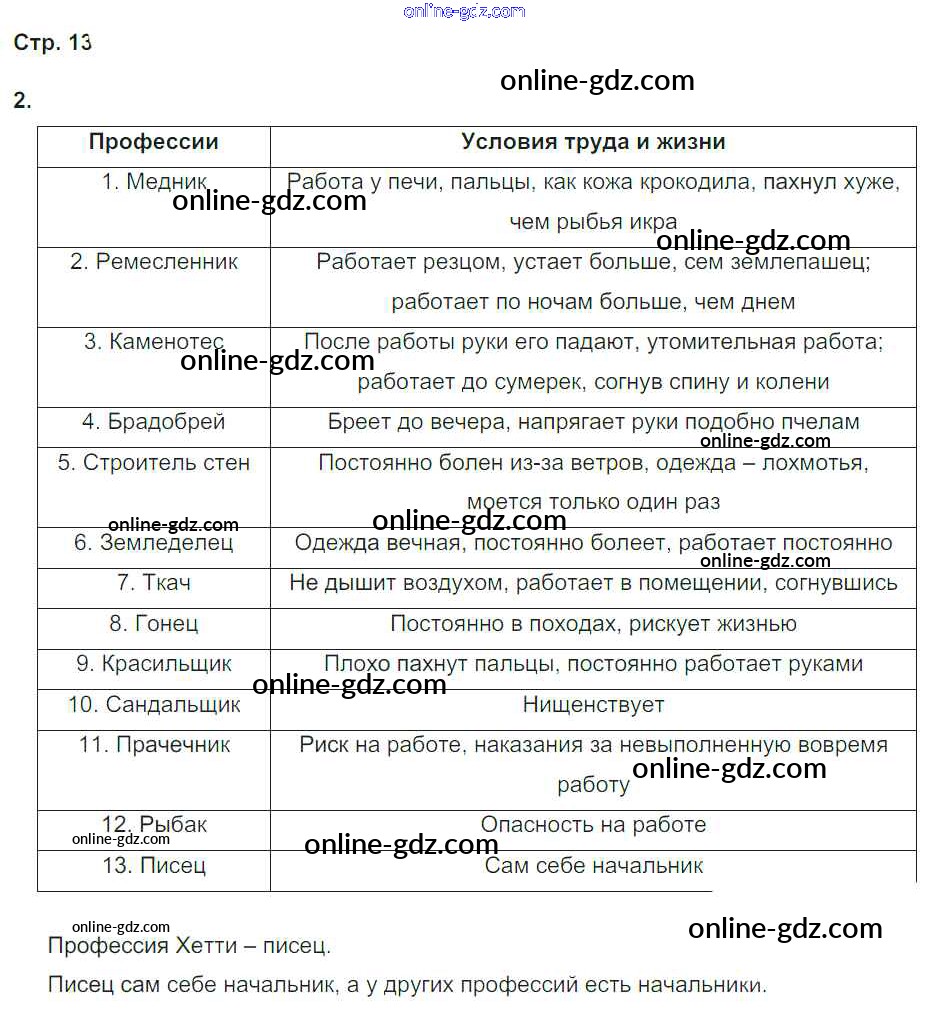 Готовые домашние задания по Истории за 5 класс Рабочая тетрадь Абрамов, Абрамова Вертикаль 2019 - Тема 2. Древний Египет стр. 13