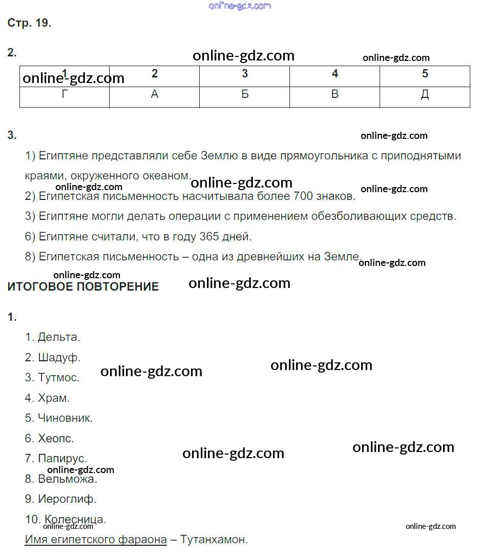 Готовые домашние задания по Истории за 5 класс Рабочая тетрадь Абрамов, Абрамова Вертикаль 2019 - Тема 2. Древний Египет стр. 19