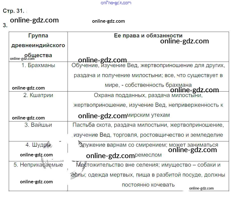 Готовые домашние задания по Истории за 5 класс Рабочая тетрадь Абрамов, Абрамова Вертикаль 2019 - Тема 4. Древнейшие государства Индии и Китая стр. 31