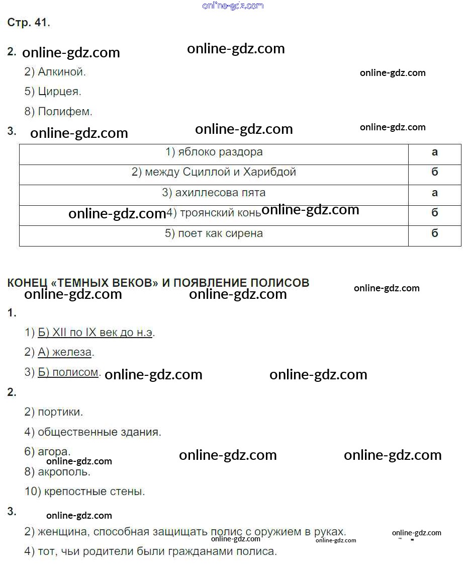 Готовые домашние задания по Истории за 5 класс Рабочая тетрадь Абрамов, Абрамова Вертикаль 2019 - Тема 5. Жители и государства Древней Греции стр. 41