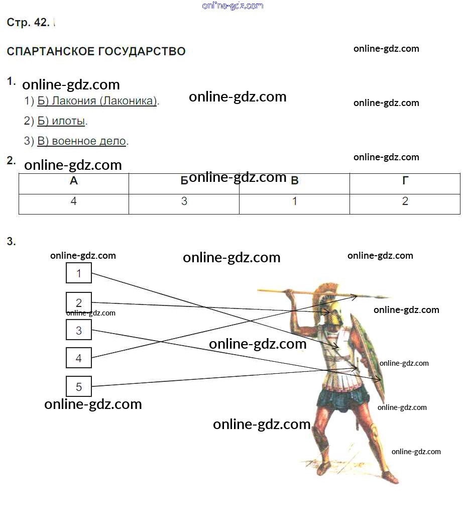 Готовые домашние задания по Истории за 5 класс Рабочая тетрадь Абрамов, Абрамова Вертикаль 2019 - Тема 5. Жители и государства Древней Греции стр. 42