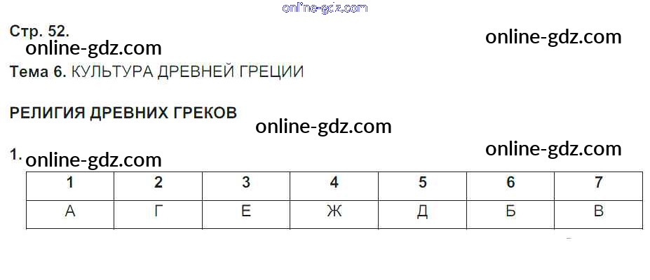 Готовые домашние задания по Истории за 5 класс Рабочая тетрадь Абрамов, Абрамова Вертикаль 2019 - Тема 6. Культура Древней Греции стр. 52